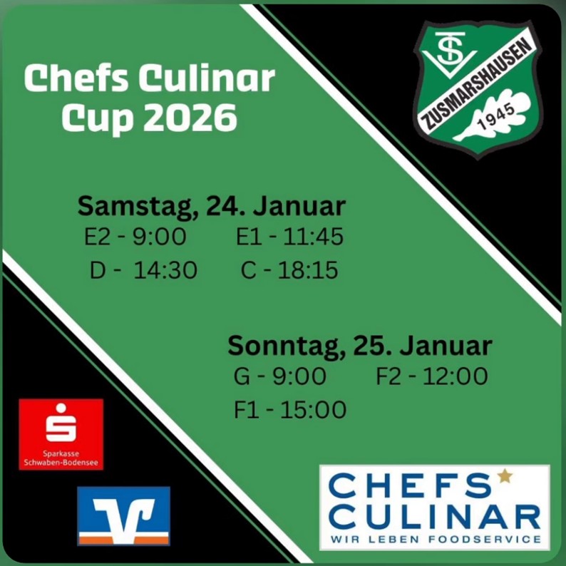 Spannende Spiele garantiert, der Chefs Culinar Cup 2026 (Foto: TSV Zusmarshausen) Am Wochenende veranstalten die Jugendfußballer des TSV in der Schulturnhalle Zusmarshausen wieder den traditionellen Chefs […]